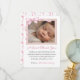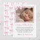 Compartilhe a alegria do primeiro marco do seu pequeno com este convite de foto estético "Coquette" deslumbrante! Com uma moldura clássica e elegante adornada com um laço rosa pintado à mão em aquarela, este design é a vitrine perfeita para a foto favorita do seu bebê.