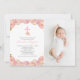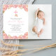 Dourada cor-de-rosa Cruz Floral Mínima de Foto Convite com bonito flores cor-de-rosa e douradas e Cruz rosa e foto da sua garota para o batismo da sua filha com seu nome em elegante letra rosa.