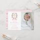 Este adorável convite para uma fotografia floral cor-de-rosa, do Batismo, seria perfeito para convidar a família e os amigos para o batizado do seu doce bebê. Ele tem uma crista de aquarela cor-de-rosa com uma cruz dourada cercada por verde e rosas, seu primeiro nome de alegria, e uma cor d'água cor-de-rosa coordenada riscada para trás. É único e precioso como a sua pequena princesa.