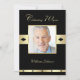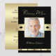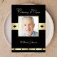 A foto do homenageado é o ponto focal deste convite de aniversário de 70 anos que é mostrado em preto com detalhes dourados. Você pode colocar o nome do homenageado abaixo da foto, o que torna um convite de aniversário de 70 anos muito personalizado. Copyright henishouseofpaper