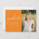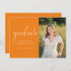 Este convite de formatura apresenta um fundo laranja para representar as cores da sua escola. Adicione uma foto e personalize o texto na frente e atrás para incluir todos os detalhes da sua festa de formatura. Este convite está disponível em diversas cores. Visite minha coleção de graduações para ver todas as opções.