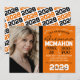 Convite para Graduação Moderna Laranja, Preto e Branco - 1 Foto em Branco Repeticionando Ano de Volta Impresso ou Digital // Transferível