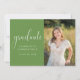 Compartilhe as notícias de sua festa de formatura com este convite para a graduação de fotos. Este convite apresenta um fundo verde com texto branco. Adicione uma foto e personalize o texto na frente e atrás para incluir todos os detalhes da sua festa de formatura. Este convite está disponível em diversas cores. Visite minha coleção de graduações para ver todas as opções.