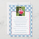 Um convite clássico de upsherin xadrez azul e vermelho, com uma foto e um poema de upsherin editável no verso.