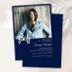 Convite de festas marinho azul e branco minimalista fotográfico moderno para uma festa de aniversário divertida. A idade pode ser alterada. Este convite é simples e elegante, convite de aniversário para homens e mulheres. As cores de fundo azul e branco do marinho podem ser alteradas para qualquer cor de sua escolha usando a ferramenta design.