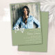 Foto do moderno minimalista sábio verde e convite de festas branco para uma festa de aniversário divertida. A idade pode ser alterada. Este convite é simples e elegante, convite de aniversário para homens e mulheres. A cor de fundo verde e branca pode ser alterada para qualquer cor de sua escolha usando a ferramenta design.