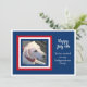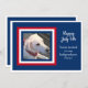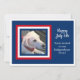 Este cartão de convite festivo de 4 de julho apresenta um quadro vermelho, branco e azul com uma foto de Olive, uma bela mistura de Labrador. Foto e texto personalizáveis.