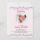 Pequenas flores em cor-de-rosa, fúcsia e lavanda bordam o topo e o fundo deste adorável convite. Uma imagem oval pontilhada segura a foto do seu bebê.<a href="https://www.freepik.com/free-vector/hand-drawn-little-flowers-cute-background_893430.htm">Concebida por Freepik (). </a>() O cartão é fácil de personalizar com seu texto, fonte e cor da fonte.<br/>() Não exatamente o que você está procurando? Todos os nossos produtos podem ser personalizados para atender às suas necessidades sem custos adicionais.<br/>() Basta entrar em contato conosco em askcottonlamb@gmail.com.<br/>() Coordenando os produtos disponíveis: Apenas nos pergunte!