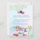 Convites de aniversário de Sereia Trendy, com um tridente, ouro metálico e glitter de ouro rosa, conchas e estrelas-do-mar.