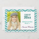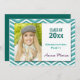 Esta tendência e convite para festas de formatura chic tem um padrão aqua e branco em forma de divisa em torno de uma foto do seu formando e informações sobre a sua celebração de formatura. Adicione uma fotografia do seu formando a este convite de festa de formatura clássico. Texto e foto são PERSONALIZÁVEIS. MAIS DESIGNS DE GRADUAÇÃO: