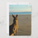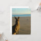 Kangaroo em um convite para fotos na praia.