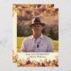 Um design bonito, com o tema do outono, com as fronteiras da folhagem no topo e no fim do convite.