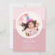 Um doce convite cor-de-rosa com uma janela de fotos redondas, com pequenos pontos e vieiras.