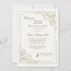 Um belo e rico convite com ouro, cantos de espiral e um quadro aberto no fundo para sua foto. Apresentado como um convite para a formatura, é adequado para a maioria das ocasiões felizes. <a href='http://www.freepik.com/free-vector/floral-frame-background_846527.htm'>Desenhado por Freepik</a>).