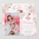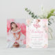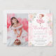 Um convite para fotos de uma menina de bailarina, rosa e pastel, com flores cor-de-rosa.