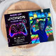 Convite de Fotografia do Aniversário de criança Neon para Jogo de Vídeo