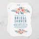 Personalize este Chá de panela Floral Moderno na moda com flores bonito laranja com folhas e texto de cor azul. Projetado como um modelo para uma fácil personalização. No verso, este convite tem um lugar para a sua foto. Substitua todas as informações e a foto de modelo com a sua. O estilo do canto do suporte pode ser alterado para qualquer outro. *Crédito do modelo fotográfico: © por Lauren Hammond