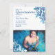 Design de Quinceañera, azul de cristal e branco, com traços de aquamarina. Dazle seus convidados com envelopes coordenados, etiquetas de endereço de retorno e detalhes da festa. Os itens vêm em várias cores e tamanhos. Todos os convites podem ser personalizados. Essa design é ideal para a Cinderela Princesa quinceanera, mas também é versátil para um inverno ou primavera quinceanera.