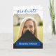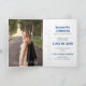 O roteiro elegante anuncia seu formando sobre sua foto favorita do mais velho na frente. Bloquear o nome deles na frente, e todos os detalhes da cerimônia, dentro junto com outra foto. A parte traseira inclui espaço para retransmitir seus planos futuros ou incluir uma mensagem de obrigado. Design disponível nas cores da escola de vermelho, laranja, roxo, verde, azul, laranja queimada, marrom e preto. Produtos correspondentes disponíveis.