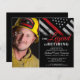 Este design apresenta a bandeira de um bombeiro com listras pretas e brancas, e uma fina faixa vermelha também. O texto "A lenda está se aposentando" fica acima de todos os detalhes do partido para o bombeiro aposentado, tenente ou chefe. Personalize ainda mais esta design com uma foto do bombeiro aposentado.