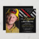 Este design apresenta a bandeira de um bombeiro com listras pretas e brancas, e uma fina faixa vermelha também. O texto "A lenda está se aposentando" fica acima de todos os detalhes do partido para o bombeiro aposentado, tenente ou chefe. Personalize ainda mais esta design com uma foto do bombeiro aposentado.
