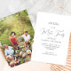 Um convite simples e mínimo de reagrupamento familiar preto e branco apresenta tipografia clássica e roteiro de caligrafia bonito, com foto de cheio.