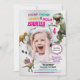 QUALQUER IDADE. Brilhante e alegre festa de aniversário de cores femininas. Insira sua própria foto. Mais convites de festas de dinossauro estão disponíveis em nosso compro: www.zazzle.com/crazylimeprints