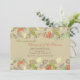Uma dupla e desenhada à mão de folhas fantasiosas, espirros pontilhados e corações agraciam este charmoso convite. O fundo colorido de areia se empresta para a temporada de outono.
