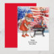 Celebre o 4 de julho com um toque divertido e temático de golfe! Este lindo cartão de convite apresenta um design alegre de aquarela de um gato golfista, completo com tacos de golfe, este convite adiciona um toque de capricho às suas celebrações do 4 de julho. Seja para um torneio de golfe, uma reunião de família ou um casamento ou evento temático patriótico, este cartão de Salvar a Data certamente se destacará e definirá o tom do seu dia especial.