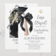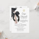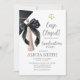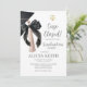 Convite de festa de graduação de Direito com pingente Coquette Preto Minimalista, Anúncio de formatura Caso encerrado, Festa de graduação com laço
