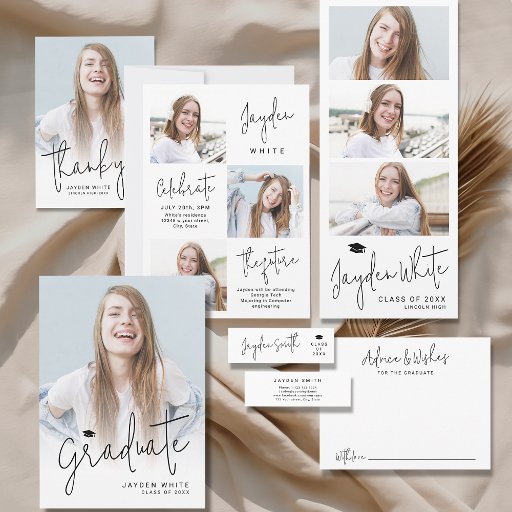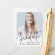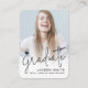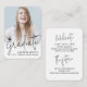 Anúncio e Convite de Graduação com script moderno em preto e branco, tamanho mini, com foto, simples e divertido. Personalize com sua própria foto e informações da festa de graduação.