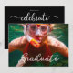 Envie convites de formatura modernos, legais e personalizáveis. Substitua a foto de amostra pela sua. O texto branco moderno em letra cursiva que se sobrepõe à fotografia na frente diz "Graduado". A parte preta na parte de trás do convite apresenta a palavra "celebre" em uma fonte branca cursiva. Substitua o texto de amostra branco no verso pelo seu graduado e evento. Personalize para qualquer graduado: ensino médio, faculdade, pós-graduação, faculdade de direito, faculdade de medicina ou escola técnica.