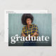 Com um formando de fontes retrógrado ousado, este cartão com fotos único é a maneira perfeita de anunciar seu formando para a família e os amigos. O estilo de safra é sutil e simples para este anúncio de graduação e perfeitamente sobre a tendência para esta turma de graduação. A parte de trás deste cartão tem bastante espaço para convidar a família e os amigos para uma comemoração de formatura.