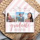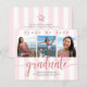 Anuncie ao mundo que o seu formando favorito alcançou o seu marco com este incrível, simples, moderno, convite para o anúncio de orçamento personalizado. Escrita de caligrafia brilhante, elegante, falso rosa dourado-glitter e cinza serif tipografia sobrepõem uma rosa claro e fundo listrado branco. Adicione três fotos de sua escolha e personalize o texto personalizado com o nome do formando, o nome da escola, o ano de aula e a data de formatura. Na parte de trás, adicione seu bilhete pessoal, na próxima escola que frequentam, informações sobre festas, etc. Garantido para adicionar diversão na moda à sua ocasião especial! Basta substituir as três fotos de exemplo por fotos próprias, digitar as informações do seu formando, personalizar a mensagem no verso e você pode personalizar facilmente este convite de lançamento de graduação de orçamento. Por favor, me mande mensagens com quaisquer perguntas ou solicitações.