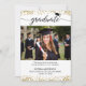 O convite de graduação com foto em dourado moderno pode ser baixado e impresso ou enviado por e-mail ou mensagem de texto.