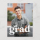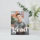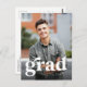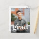 Com um formando de fontes retrógrado ousado, esta placa vertical de uma foto é a maneira perfeita de anunciar seu formando à família e aos amigos. O estilo de safra é sutil e simples para este anúncio de graduação e perfeitamente sobre a tendência para esta turma de graduação. A parte de trás deste cartão tem bastante espaço para convidar a família e os amigos para uma comemoração de formatura.