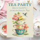 Cartão de festa de chá Whimsical com equipes empilhadas, beija-flor e florais florescentes. Que encantador!