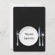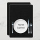 Placa branca jantada com prato de prata preto para convite de festa jante. O plano de fundo pode ser editado.