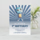 Faça do seu primeiro aniversario uma ocasião inesquecível escolhendo esse convite de aniversário de robô azul giro para convidar seus amigos e entes queridos para esta celebração especial do marco. Uma variedade de tipos de papel e estilos de canto estão disponíveis para seus convites exclusivos, juntamente com a opção de download se você preferir um formato digital.
