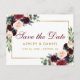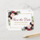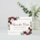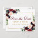 Cartão Postal de Convite de Guarda Data de Noivado em Aquarela Floral Burgundy Marsala Azul Dourado - Texto Burgundy e Dourado