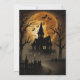 Forneça uma experiência verdadeiramente imersiva para os convidados do seu partido com este incrível convite de apoio! Apresentando uma mansão assombrada por neblina, uma lua de cheio brilhante e um enxame de morcegos, esta design estabelece perfeitamente um humor assustador e gótico. A estética escura é ideal para complementar a frente do convite do seu partido de Halloween.