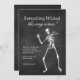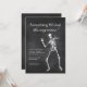 Este Convite para Festa de Halloween é acentuado com um esqueleto num fundo estranho de quadro.