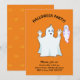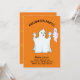 Lindo convite de Halloween com fantasmas Trumpy e Munchy. Há um padrão de abóbora em fundo laranja no verso. Todos os textos e números estão prontos para serem personalizados.