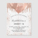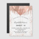 Um ímã de convite. Para um Sweet 16 elegante, aniversário de 16 anos. Na frente: Um fundo branco estiloso. Decorado com rosa dourado, gotas de glitter falso, efeito de tinta pingando e balões. Personalize e adicione um nome, idade e detalhes da festa. O nome é escrito com uma fonte manuscrita estilo lettering