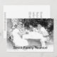 Fotografia de uma família reunindo-se ou reunindo picnic.reunindo em preto e branco. Pai, mãe, filho e família sentam em volta de uma mesa de piquenique coberta com um pano de mesa.