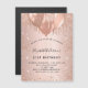 Um convite de ímã para um aniversário elegante de 21ruas (ou qualquer idade). Um fundo rosa dourado. Decorado com pingos de rosa, aparência de pingar tinta e balões. Personalize e adicione um nome, 21 anos e detalhes da festa. O nome é escrito com um script de estilo manuscrito. Tanto um convite como o lembrete Salvar Data para seus convidados!