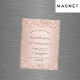 Para uma elegante festa de aniversário 50th (ou qualquer idade). Um fundo de aparência metálica falsa rosa dourado. Decorado com rosa dourado falso brilho. Personalize e adicione um nome e detalhes da parte. O nome é escrito com um script de estilo manuscrito. Tanto um convite como um lembrete Salvar a Data para seus convidados!