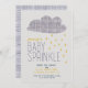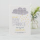 um jovem moderno, o bebê sprinkle, a convidar a celebrar uma mãe outra vez. com nuvem de escotilha cruzada e gotas de chuva na mostarda e no marinho.