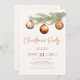 Convite de festas de Natal neutro minimalista com galho de pinheiro de aquarela decorado com ornamentos de bola de Natal.