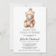 Cuimicamente bonitinho ursinha o convite de chá de fraldas de inverno num estilo neutro em termos de gênero, com o ditado: bebê é frio lá fora. Urso de cor d'água adorável com chapéu de inverno e cachecol.